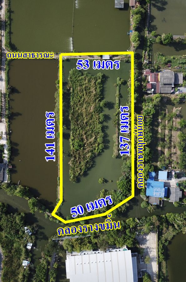 The large canal (about 15 meters wide) is called Khlong Rang Khamin and Khlong Ratchaphruek Noi (about 6 meters wide), which boats can sail along to Bang Khun Thian Sea in a distance of 20 kilometers. The land is rectangular in shape and has a side that is connected to the canal that is 187 meters long.