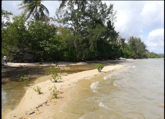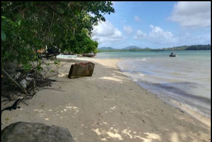 Want to sell land next to the sea with a beach, Ban Laem Sai, Phuket, 4 plots, area 3-2-91 rai, title deed is NS.3 Kor, quiet atmosphere, suitable for relaxation or residence, selling as a whole, price 65 million, transfer fee split 50/50.