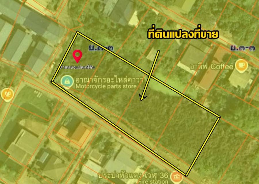 - Land area: 1-2-36 rai, 87.5 meters wide, 29.10 meters deep, suitable for residential development, warehouses, and shophouses. Good location with convenient stores, shops, and restaurants.