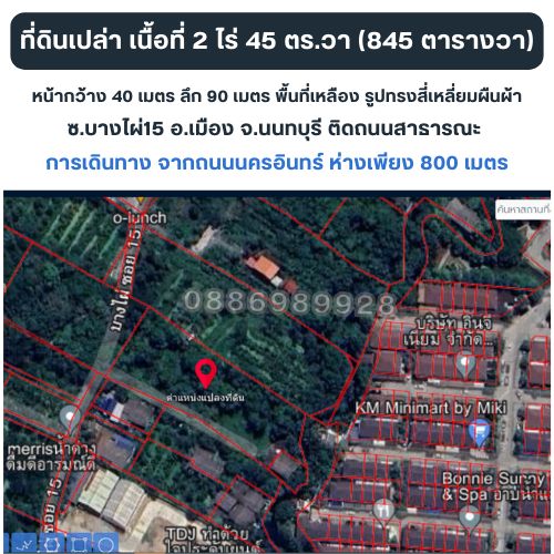 - เนื้อที่ 2 ไร่ 45 ตร.วา (845 ตารางวา)