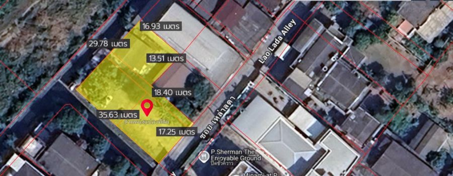 ที่ดินเป็นรูปตัวแอล( L ) กว้างติดถนนซอย ประมาณ 17 เมตร ลึก ประมาณ 35 เมตร