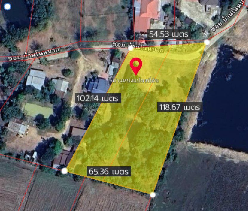หน้ากว้างติดถนนคอนกรีต 54 เมตร X ยาว 118 เมตร