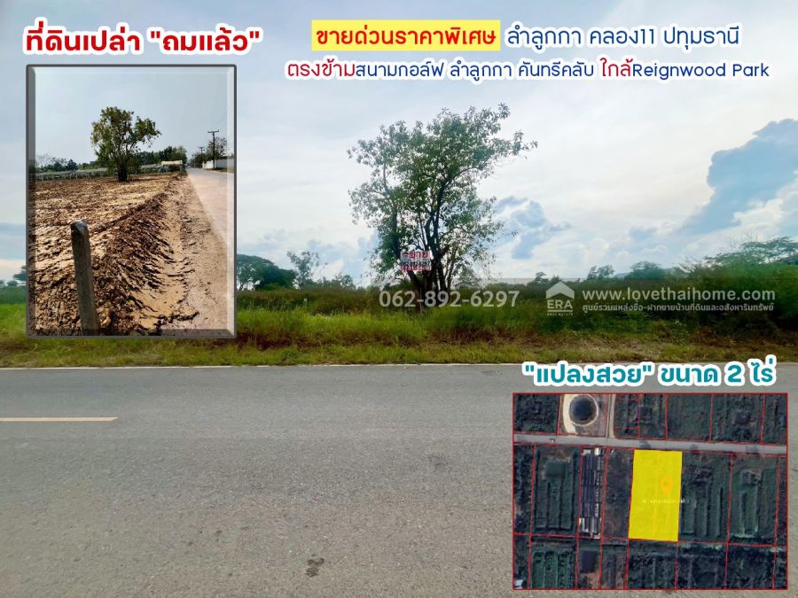 ขายที่ดิน ลำลูกกา คลอง11 ปทุมธานี ขนาด 2 ไร่ ถมแล้ว แปลงสวย ทำเลดี ขายด่วนราคาพิเศษ ใครมองหาที่ดินทำเลดีบอกเลยว่าห้ามพลาด ตรงข้ามสนามกอล์ฟ ลำลูกกา คันทรีคลับ ใกล้ Reignwood Park