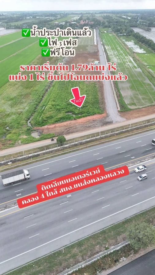 ติดเลียบ มอเตอร์เวย ถนนสาธารณะ 7 เมตร เดินเสา สาย ไฟ 3 เฟส น้ำประปาเดินให้แล้ว เริ่มต้นที่ไร่ละ 1.79-2.2 ล้าน/ไร่ ราคาเริ่มต้น 1 ไร่ ราคา 1,790,000 บาท