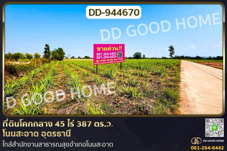 ที่ดินโคกกลาง 45 ไร่ 387 ตร.ว. โนนสะอาด อุดรธานี ใกล้สำนักงานสาธารณสุขอำเภอโนนสะอาด
