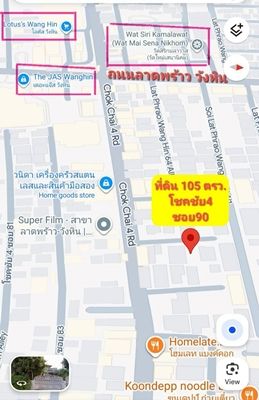 ขายที่ดิน 105 ตรว. ลาดพร้าว วังหิน โชคชัน 4 ซอย 90 หน้ากว้างประมาน 15เมตร ลึก ประมาน 30เมตร