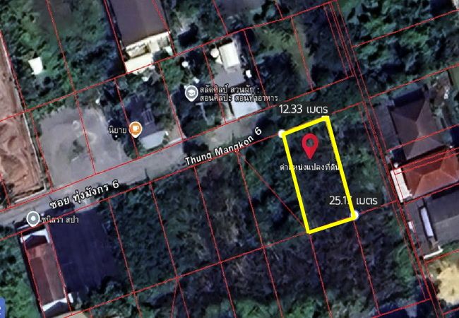 – ที่ดิน เนื้อที่ 73 ตารางวา แปลงสวย หน้ากว้าง 12 x 25 เมตร ถมแล้วสูงกว่าถนน