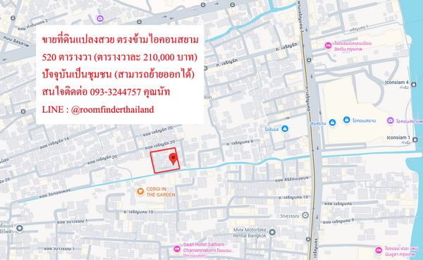 Land For sell opposite ICONSIAM 520 Sq.w. Price 210,000 / Sq.w. Total 109,200,000 Baht