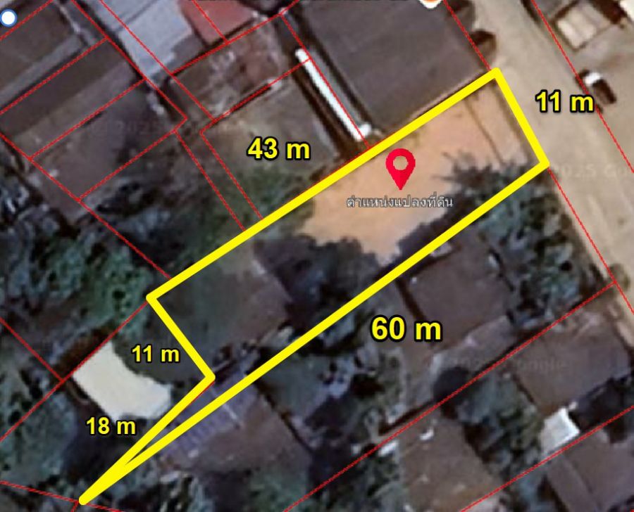 หน้ากว้างติดถนนคอนกรีต 11 เมตร X ยาว 43 เมตร