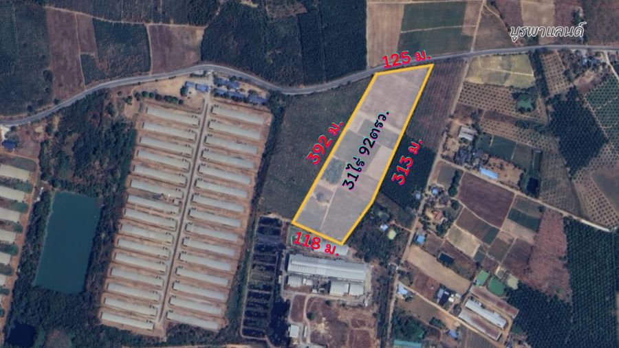 ขายที่ดินชลบุรี บ่อทอง 31ไร่ 92ตรว. ผังสีเหลือง เหมาะสำหรับทำฟาร์มเลี้ยงสัตว์ โรงงาน โกดังสินค้า