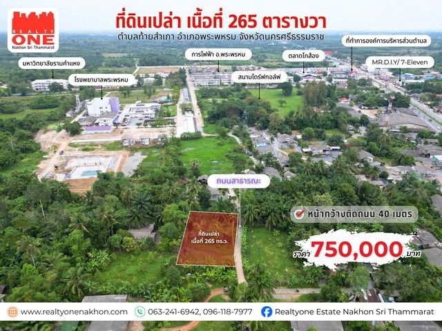 ที่ดินแปลงสวย เนื้อที่ 265 ตารางวา หน้ากว้างติดถนน 40 เมตร