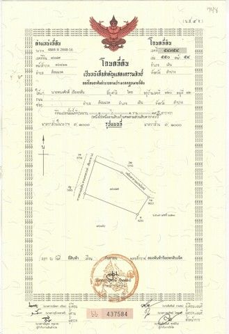 • ที่ดิน: โฉนดครุฑแดง น.ส.4 จ. เนื้อที่ 1 ไร่ 1 งาน 39.3 ตร.ว. ถมแล้ว เต็มพื้นที่