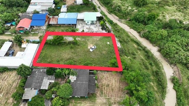 - ด้านติดลำห้วยสาธารณประโยชน์ กว้างประมาณ 20 เมตร