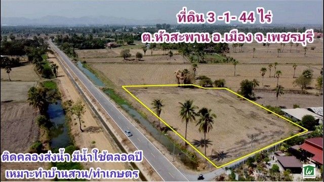 ขายที่ดินใกล้อำเภอเมืองเพชรบุรี ขนาด 3-1-44 ไร่ ห่างตัวเมืองเพชรบุรีเพียง 11 กม. ตำบลหัวสะพาน อำเภอเมือง เพชรบุรี