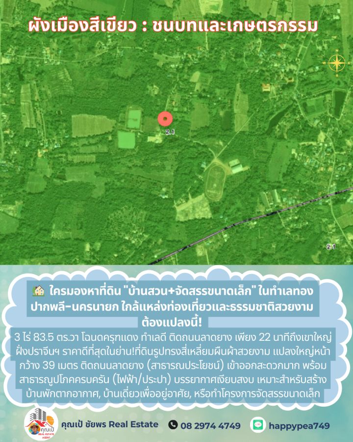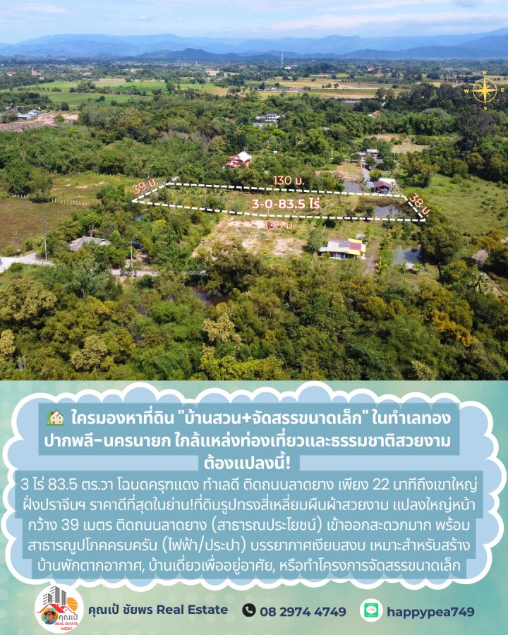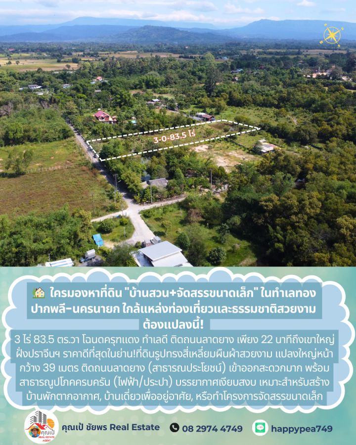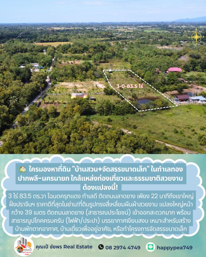 🏡 [SOLD OUT เร็วๆ นี้!] ใครมองหาที่ดิน "บ้านสวน+จัดสรรขนาดเล็ก" ในทำเลทอง ปากพลี-นครนายก ใกล้แหล่งท่องเที่ยวและธรรมชาติสวยงาม ต้องแปลงนี้! 3 ไร่ 83.5 ตร.วา โฉนดครุฑแดง ทำเลดี ติดถนนลาดยาง เพียง 22 นาทีถึงเขาใหญ่ฝั่งปราจีนฯ ราคาดีที่สุดในย่าน!