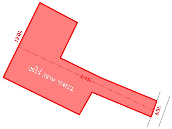 หน้ากว้างติดถนน 42 ม. ลึก 354 ม. หลังกว้าง 193 ม.