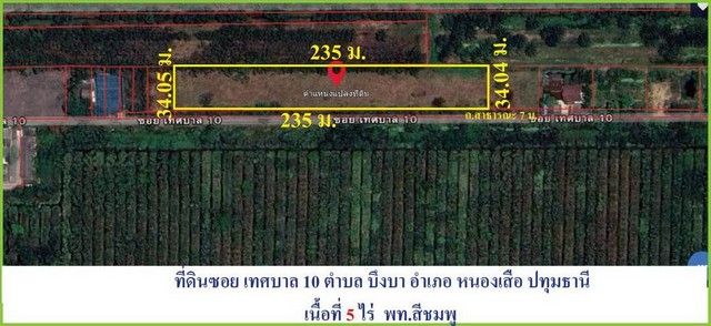 ขายที่ดินราคาถูกใกล้เคียงราคาประเมิน ที่ดินสวยใกล้ รพ.หนองเสือ – ถนนรังสิต–นครนายก คลอง 10 ซอยเทศบาล 10 ต.บึงบา อ.หนองเสือ จ.ปทุมธานี