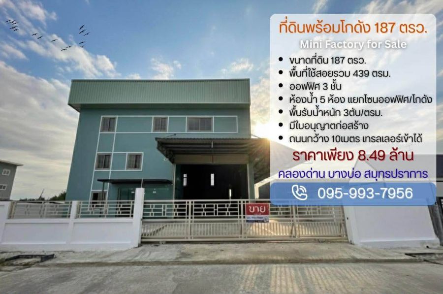 ขายถูกมาก!! ที่ดินพร้อมโกดังและออฟฟิศ 3 ชั้น สร้างใหม่ ทำเลทอง ต.คลองด่าน อ.บางบ่อ จ.สมุทรปราการ