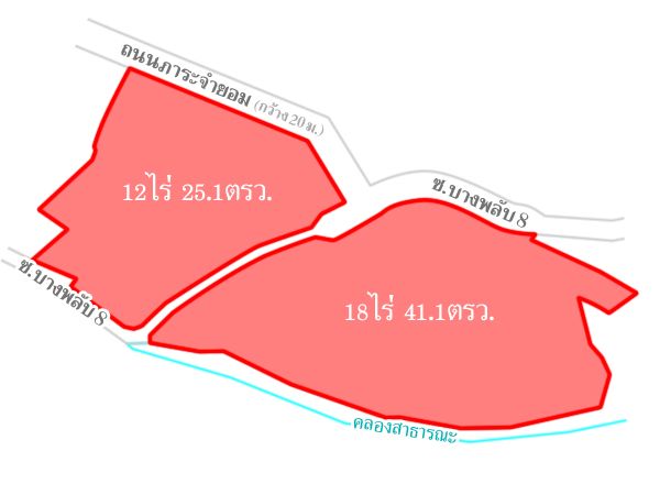 ที่ดินแปลงที่ 2 ติดถนน 2 ด้าน และติดคลอง 1 ด้าน
