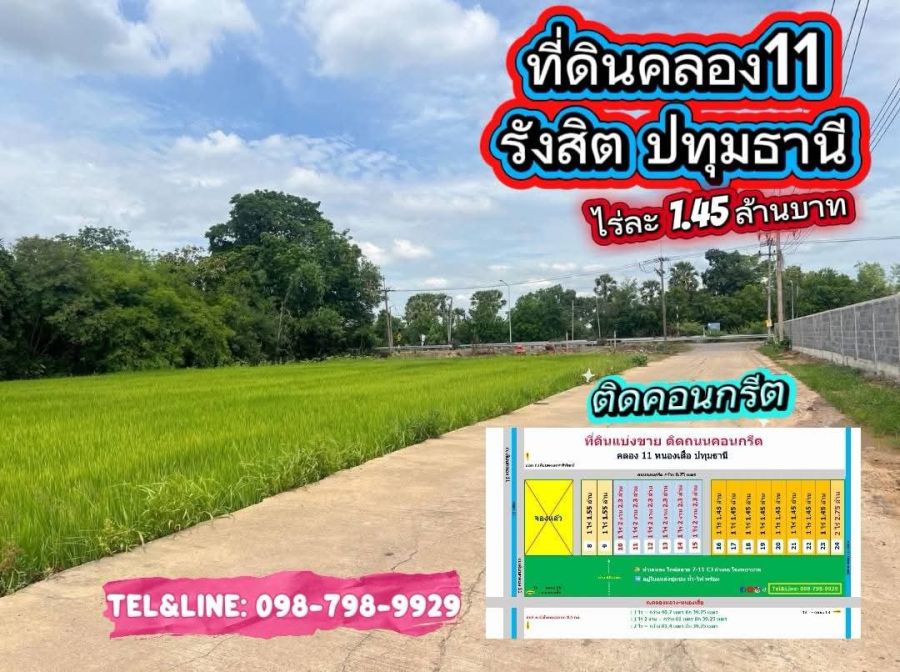 ที่ดินสวย ทำเลทอง ติดถนนคอนกรีต#ที่ดินคลอง11 รังสิต ปทุมธานี 1 ไร่ 1.45 ล้าน