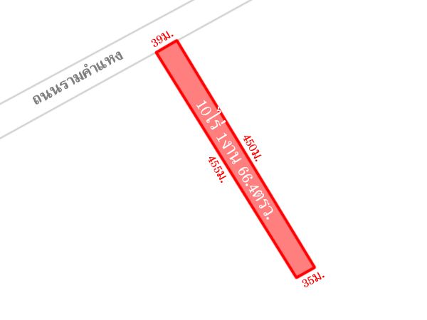 หน้ากว้างติดถนน 39 ม. ลึก 450 ม..