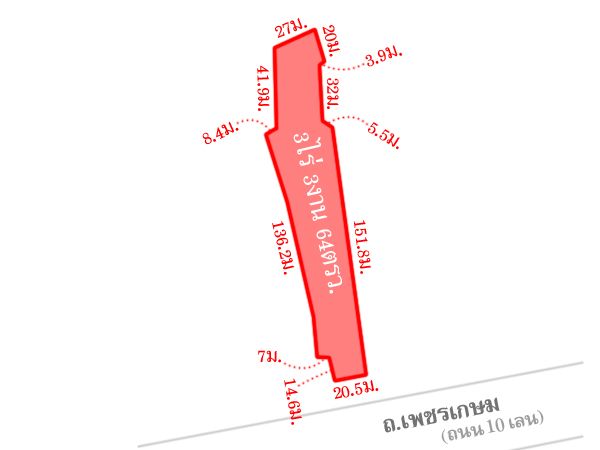 หน้ากว้างติดถนน 20.5 ม. ลึก 203 ม.