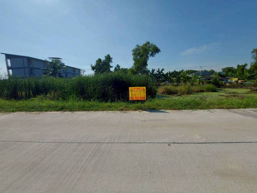 - Area: 2-0-0 rai (approx. 3,400 sq m), 125 meters wide, 25.6 meters deep. Suitable for building a house, warehouse, rental rooms, or home office.