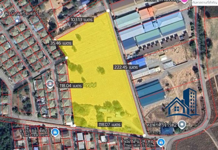 - ที่ดิน 11-2-96 ไร่ (4,696 ตารางวา | 18,784 ตารางเมตร)