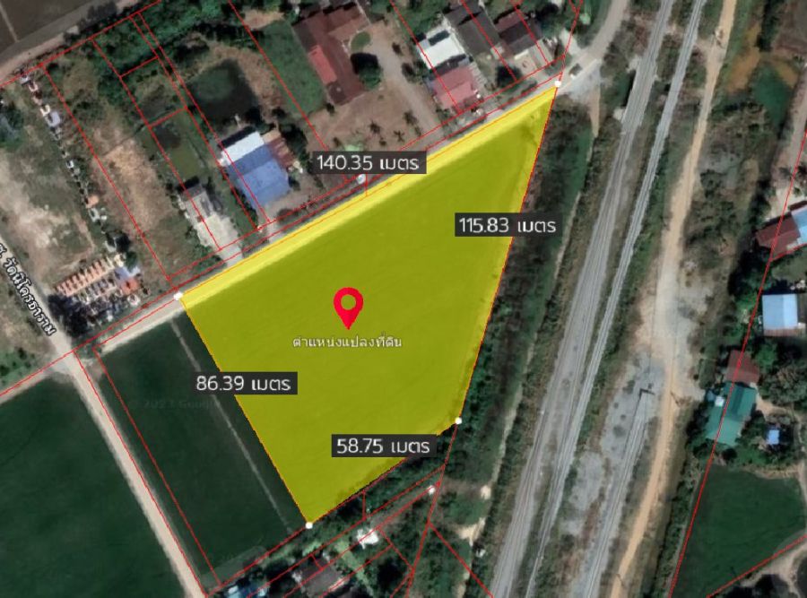 หน้ากว้างติดถนนคอนกรีต 140 เมตร X ยาว 86 เมตร