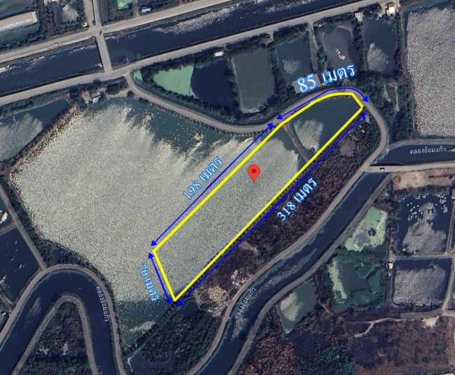 ด้านหลังที่ดินติดคลอง ชื่อคลองอ้อมแก้ว คลองนี้มีขนาดใหญ่มาก มีความกว้าง ประมาณ 25 เมตร มีน้ำตลอดทั้งปี