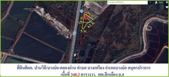 ขายถูกใกล้เคียงราคาประเมินราชการ ที่ดินติดถนนบางบ่อ-คลองด่าน บางเพรียง บางบ่อสมุทรปราการ