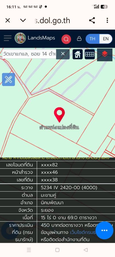 ที่ดินม่วงลาย 32-1-71ไร่ อยู่ต.มะขามคู่ อ.นิคมพัฒนา จ.ระยอง ที่ดินหน้าติดถนน2ด้านยาวประมาณ200ม. ขายไร่ละ2.8ล้าน