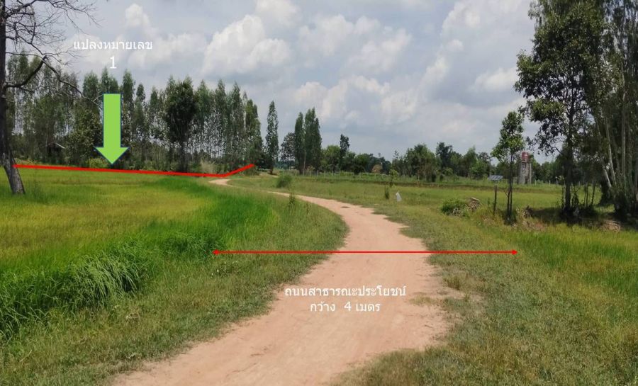 น้ำไม่ท่วม มีถนนดินลูกรังกว้าง 4 เมตรเข้าถึงแปลงที่ดิน