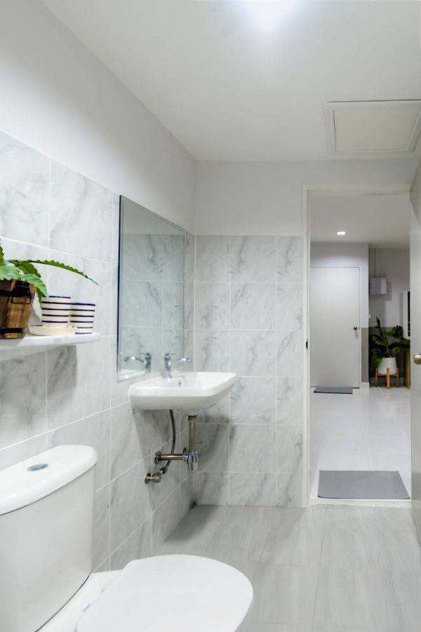 สุขภัณฑ์และกระเบื้องใหม่ทั้งห้อง