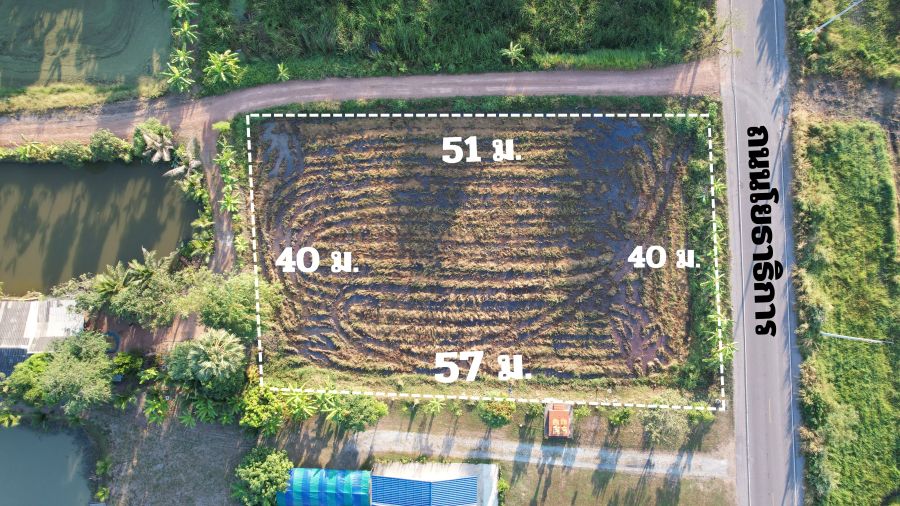 หน้ากว้างติดถนนหลวง(โยธาธิการ) กว้าง 40 เมตร ลึก 51 ม. โดยประมาณ