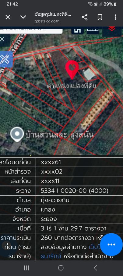 ขายที่ดินเปล่า 3.5ไร่ ต.ทุ่งควายกินอ.แกลง