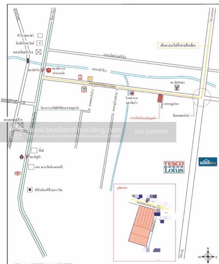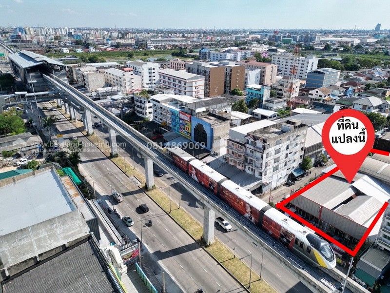 ขายที่ดิน ติดถนนเทพารักษ์ กม.3 ปากซอยบุญรักษา ใกล้รถไฟฟ้าสายสีเหลือง สถานีศรีเทพา 200 เมตร