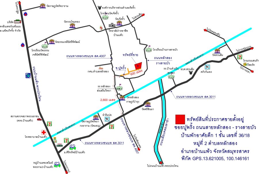ทำเล: ซอยปู่พริ้ง ถนนสายหลักสอง - รางสายบัว ต.หลักสอง อ.บ้านแพ้ว จ.สมุทรสาคร