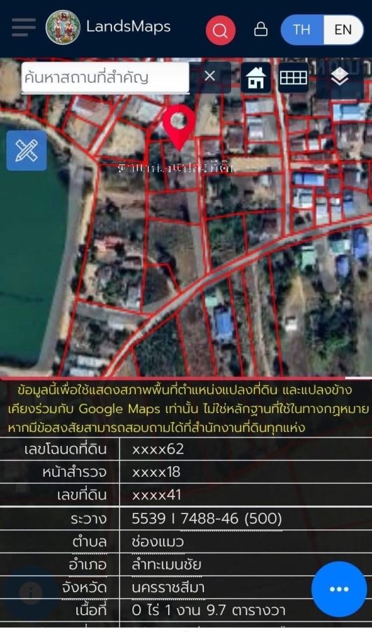 ขายที่ดิน 1 งาน 9 ตารางวา ต.ช่องแมว อ.ลำทะเมนชัย จ.นครราชสีมา