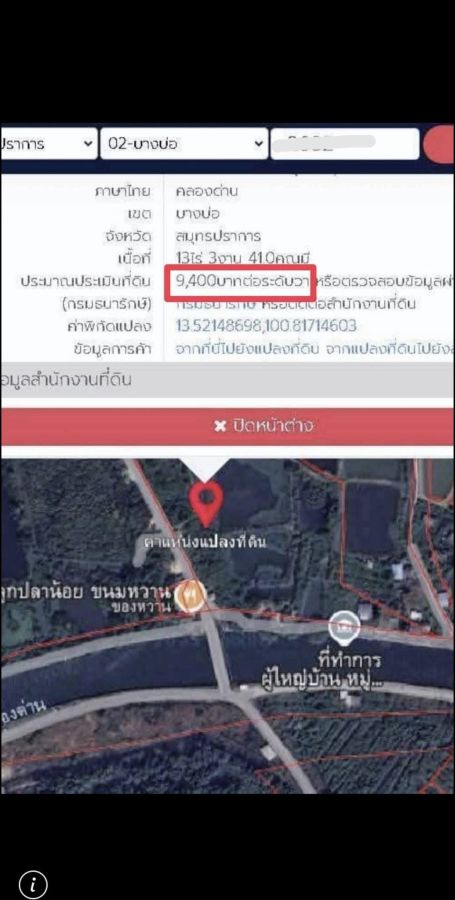 (ราคาประเมินกรมที่ดิน 52 ล้าน ( 9,400บาท/ตรว.)
