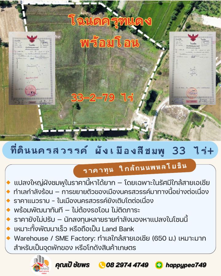 🔥 DEVELOPER & INVESTOR ALERT! โอกาสคว้า Land Bank ต้นทุนต่ำ ทำกำไรส่วนต่างได้มหาศาล! ที่ดินแปลงสวย 33 ไร่ หนองกระโดน เมืองนครสวรรค์ ผังเมืองสีชมพู (ชุมชน) พัฒนาได้ทันที