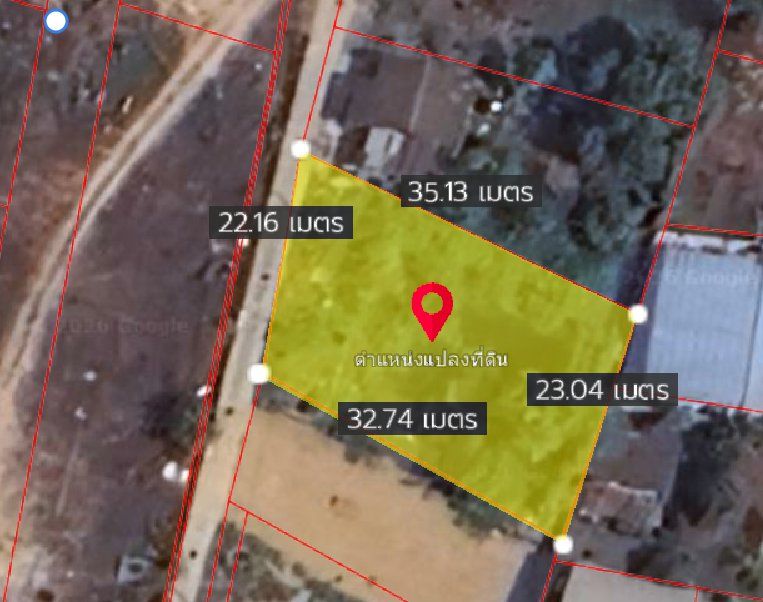 หน้ากว้างติดถนนคอนกรีต 22 เมตร X ยาว 35 เมตร