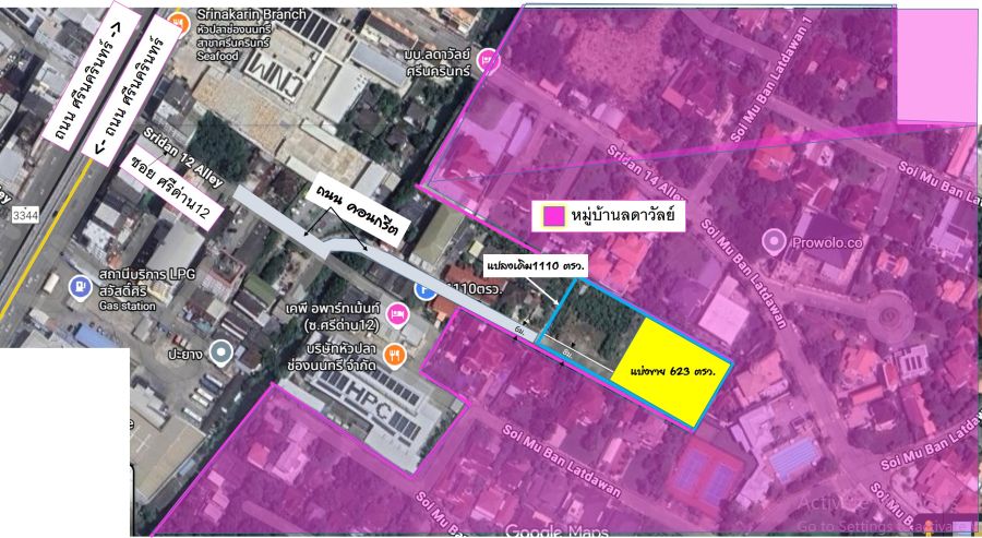 แบ่งขายที่ดิน 623 ตรว.(1ไร่ 223 ตรว.) ถ.ศรีนครินทร์ ซอยศรีด่าน12 ใกล้ สถานีรถไฟฟ้าศรีแบริ่ง บรรยากาศเยี่ยม ความปลอดภัยดีมาก ติดหมู่บ้านลดาวัลย์ถึง 3 ด้าน