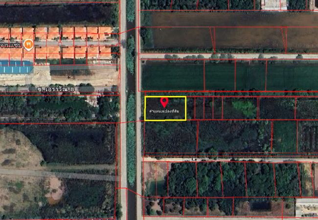 – ที่ดิน เนื้อที่ 1 ไร่ แปลงสี่เหลี่ยมสวย แปลงมุม