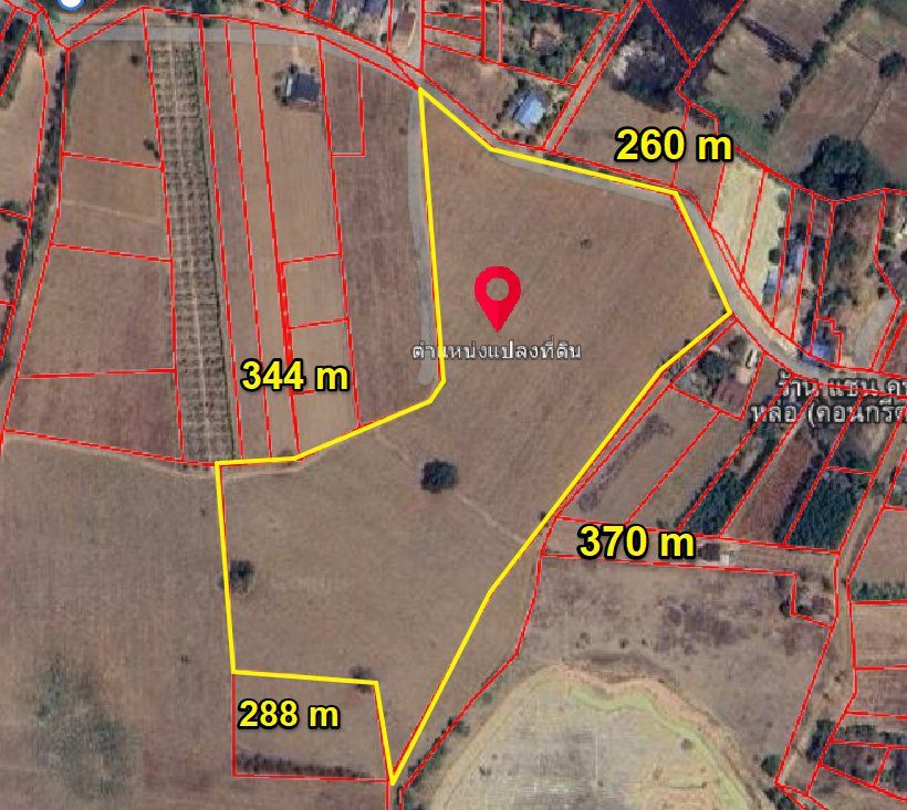 หน้ากว้างติดถนนคอนกรีต 260 เมตร X ยาว 370 เมตร