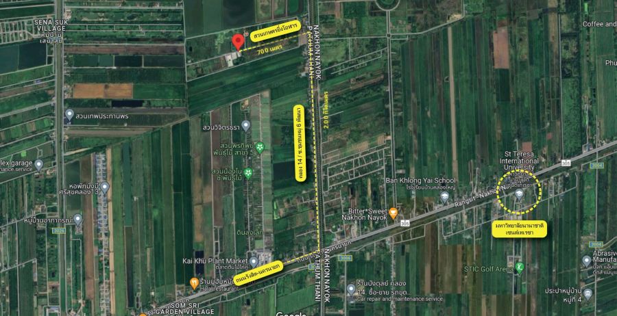 ● ห่างถนนรังสิต–นครนายก ประมาณ 2 กิโลเมตร