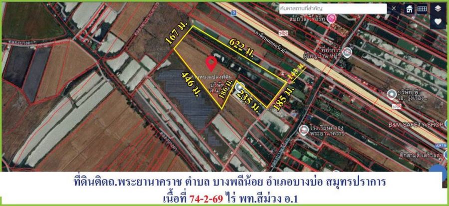 🟣 ขายที่ดินผังสีม่วง บนถนนบางนาตราด กม.32 ขาออก ติดถนนพญานาคราช บางพลีน้อย บางบ่อ สมุทรปราการ