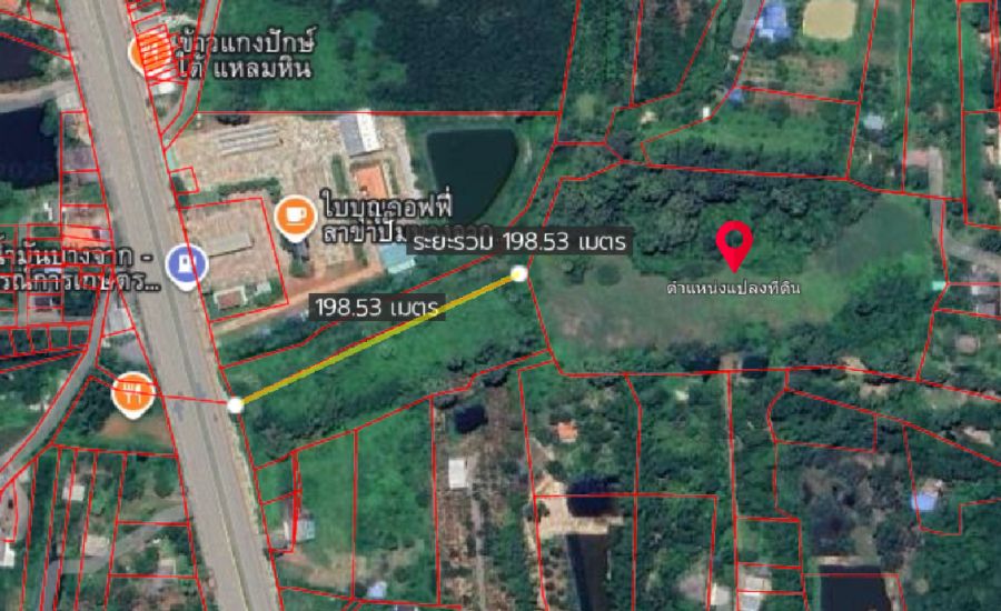 เนื้อที่ 19 ไร่ 2 งาน 56 ตร.ว. ที่ดินหน้ากว้างประมาณ 130 เมตร ยาวประมาณ 240 เมตร พิกัดที่ดิน