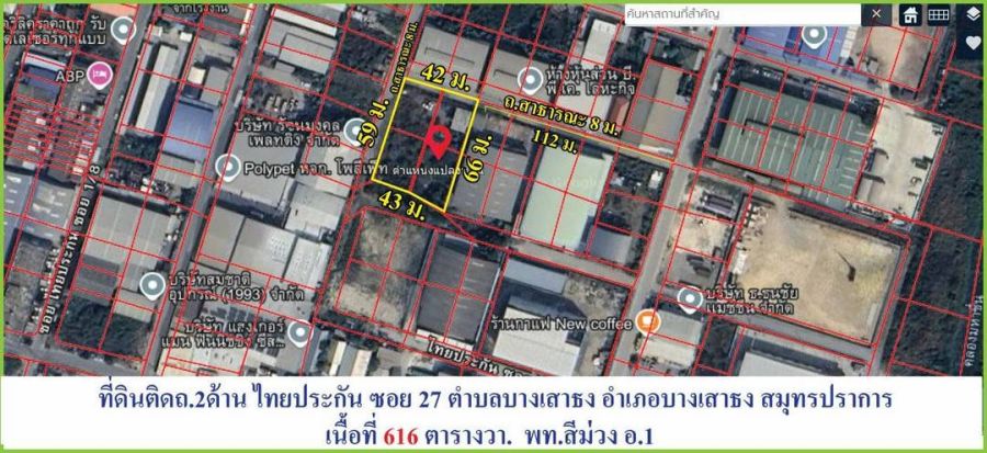 🟣 ขายถูกต่ำกว่าตลาด ที่ดินผังสีม่วง ถมแล้ว ซอยไทยประกัน 27 บางเสาธง สมุทรปราการ
