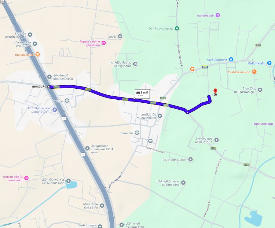 - ใกล้ถนนสาย 331 และแยกเนินหิน เพียง 3 นาที (1.8 กม.)